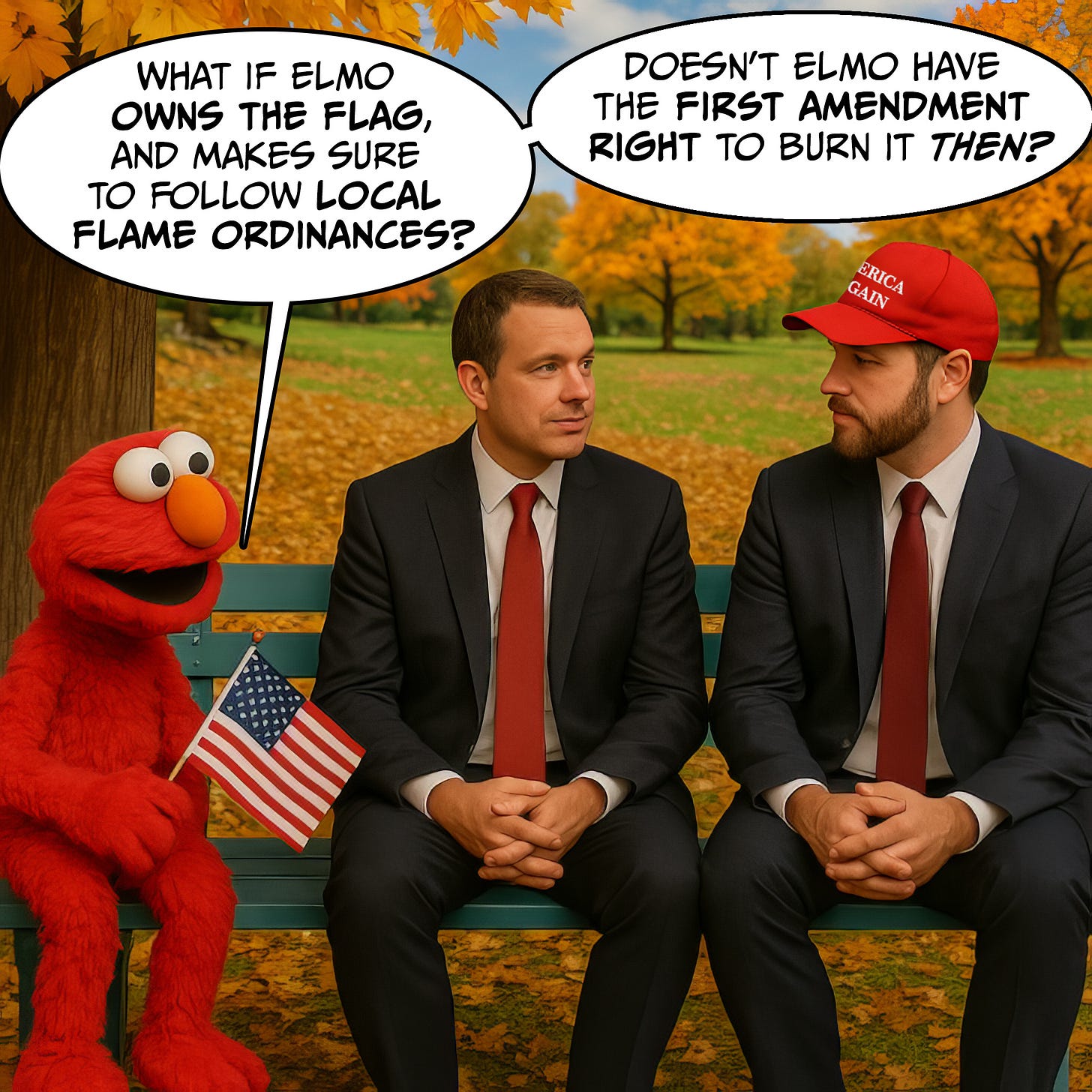 Our civic discourse is in danger! ERI footnotes the NYT! Flag burning is protected speech! & more!