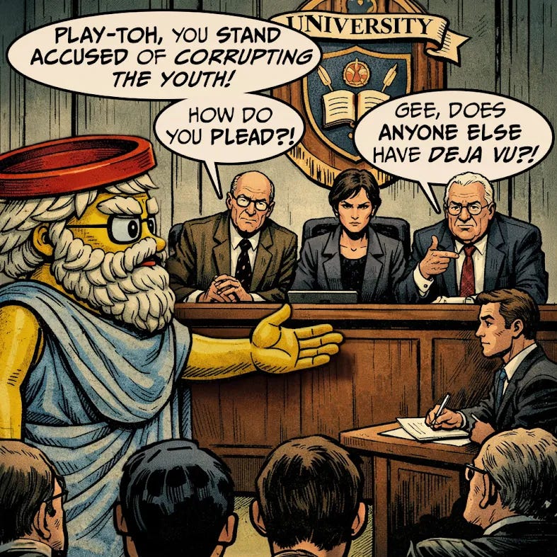 But if your response is to let the state decide which viewpoints are permissible in the classroom — and then to deny its censorship because the targets are the right enemies — you’ve decided to fight illiberalism with illiberalism. And that is exactly how you end up with Plato getting fed into a compliance grinder.